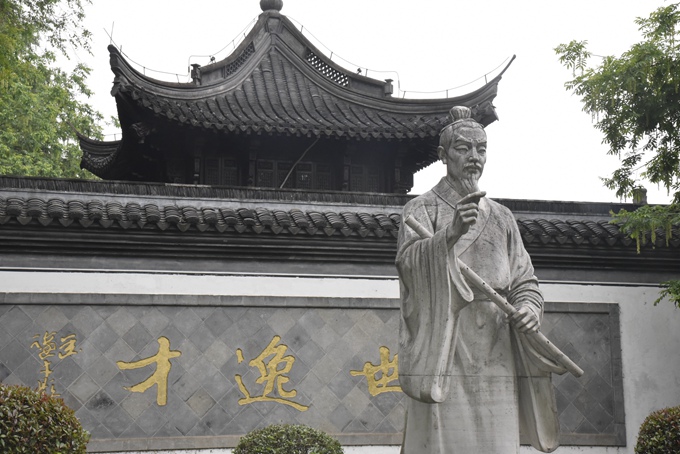 柯亭,位于江南古镇柯桥,一名千秋亭,又名高迁亭。《后汉书· 蔡邕传》注:“蔡邕告吴人曰:吾昔尝游会稽高迁亭,见屋椽中东第十六根可以为笛,取用果有音。”因为这支竹取自柯亭,后人便把这笛子称为“柯亭笛”。柯亭原为驿亭,它地处一块形若半岛的平地上,三面临水,风景秀丽。两层楼建筑,飞檐翘角,古朴典雅。其南面正对古纤道,登楼远眺,心旷神怡。近旁建有“汉蔡中郎祠”,为后人纪念蔡邕所设。辛亥革命前后,鲁迅在故乡绍兴执教时,曾和周建人等一起到过“柯桥的柯亭”,凭吊古迹和游览观光。