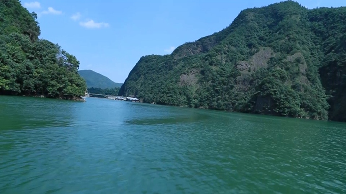 五泄瀑布早在1400年前的北魏就闻名于世,郦道元的《水经注》里,就有着详细的记载。历代的文人墨客如宋杨万里、王十朋,元杨铁崖,明陈洪绶、徐渭、袁宏道、宋濂都曾来此游览,留下了画稿、诗文。明代吴中四才子唐寅、文征明等赛诗于五洩,更是传为佳话。碧绿的湖水,巍峨的山峰,壮奇的瀑布,幽深的峡谷,繁茂的植被,古老的禅寺,纯净的水质,清新的空气,凉爽的气候,使人仿佛进入了人间天堂。游览五洩,一般从青口进入,古人云:“五洩名山青口锁,到此看山山便可”。沿公路前行,路旁曲溪青流,远处便是叠石岩。它壁立数十丈,层层叠叠如彩屏。再前便是称作“五泄湖”的水库,其弯弯曲曲,长2公里许,犹似一条绿色的绸带飘浮在群山之中,颇有富春山水的风采。