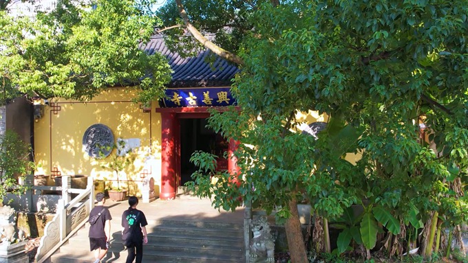 兴善寺位于新昌县澄潭街道,北靠遁山,南望穿岩十九峰,澄潭江在寺前蜿蜒流过。因东晋高僧支遁大师曾在此驻锡,又有书圣王羲之长住研习而名声在外,慕名者接踵而至。